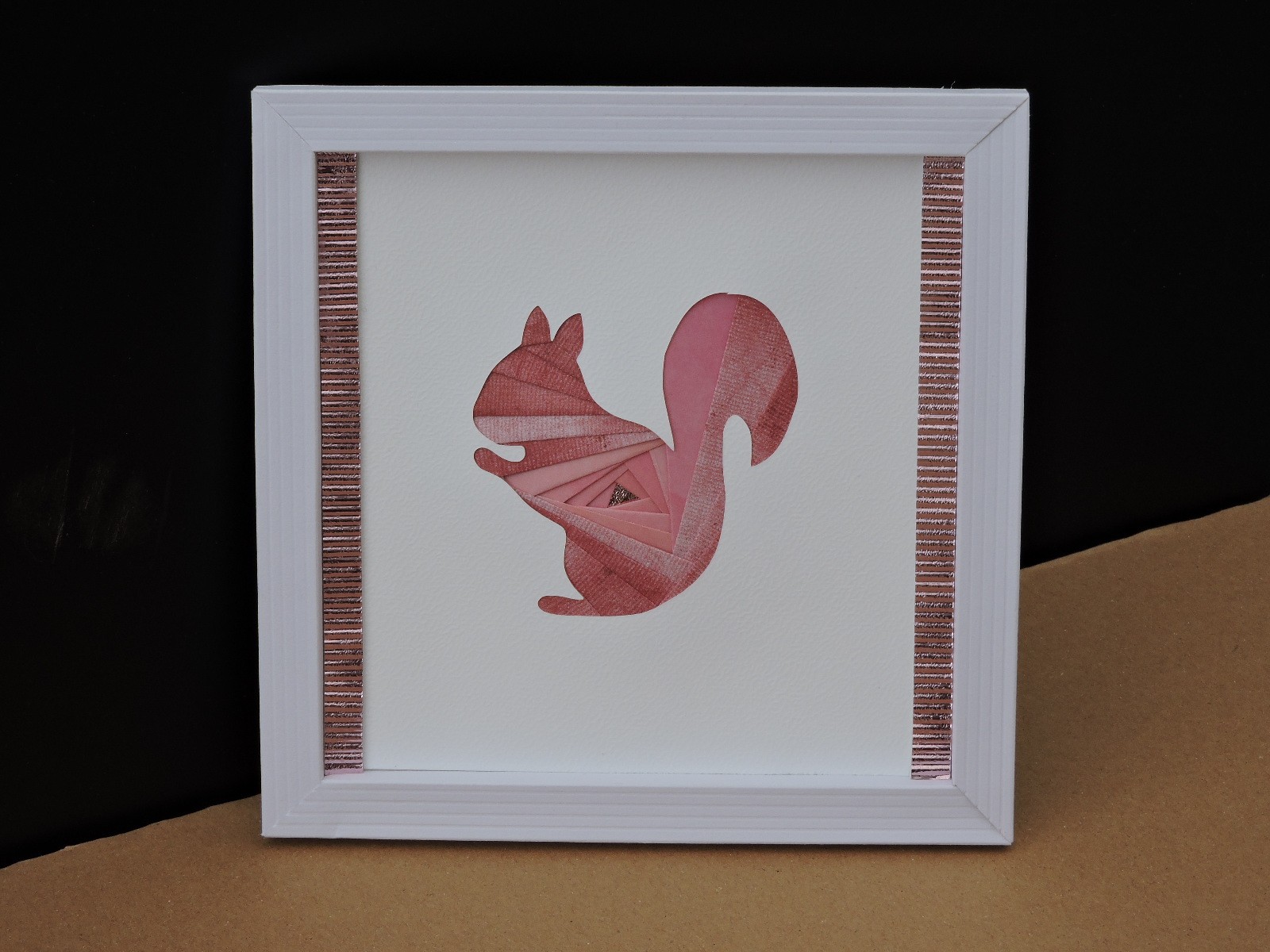 Ce petit écureuil est réalisé avec des bandes de papier de récupération de différentes nuances de marron.